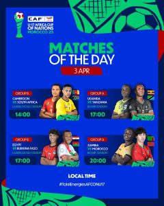 La Coupe d’Afrique des Nations U17 bat son plein au Maroc, et la deuxième journée promet des affrontements palpitants entre les jeunes talents du continent. Voici le programme des matchs du jour, jeudi 3 avril 2025 :